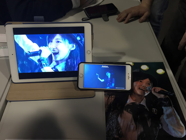 อันนี้เอาคลิปจากสเตจมาเปิด อัน iPad เป็น kiseki wa ma ni awanai ส่วนจอ iPhone เป็น itoshisa no accel ซึ่งภาพนี้ถ่ายตอนบูธวันที่ 17 ตุลาคม หลังวันแรกของสเตจล่าสุด 1 วันพอดี