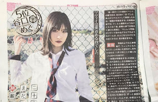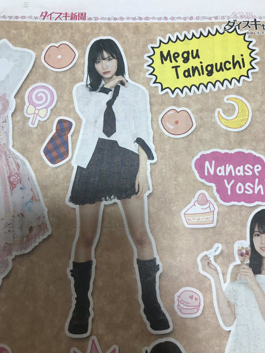 “Daisuki Senbatsu Event ครั้งที่ 1” อันดับที่ 5 คือ ทานิกุจิ เมกุ (อายุ 20) สิ่งที่เจ้าตัวรีเควสท์และเป็นจริงขึ้นมานั้นคือ 1 รูปที่สวมชุดจากเพลง “Seifuku ga Jama wo Suru” และถ่ายแบบแนวคล้ายการถ่ายด้วยฟิล์ม